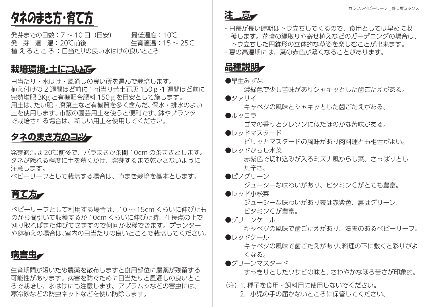 ベビーリーフ(草丈10~15cm)用に最適な10種の葉物野菜(アブラナ科)を
