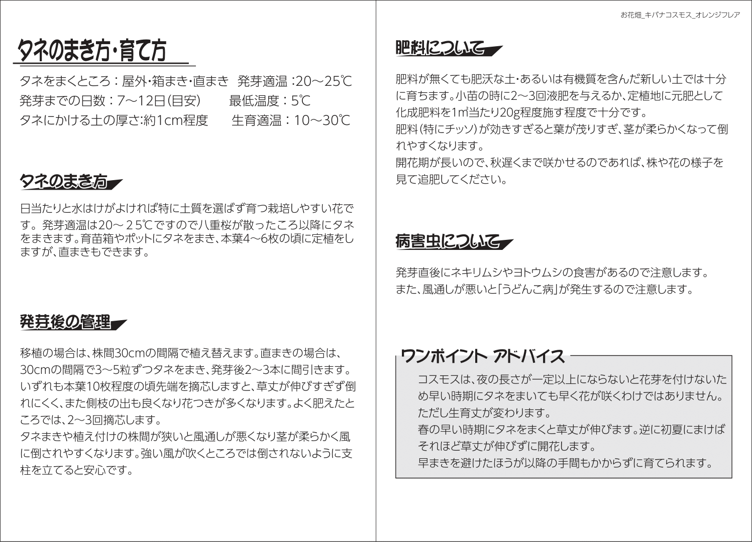 お花畑 キバナコスモス オレンジフレア 1袋